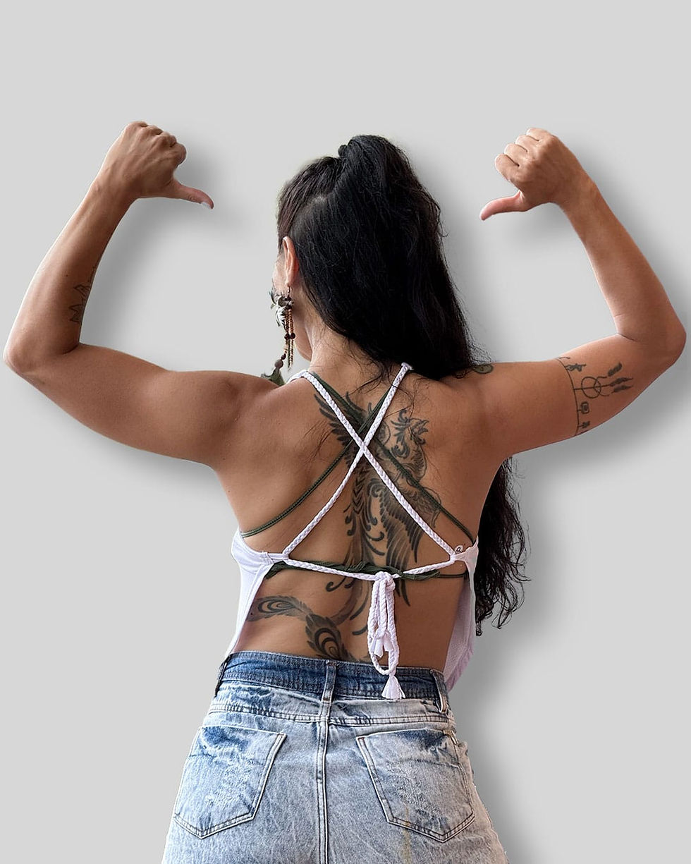 Um dos maiores símbolos da Dabim Store é a Coroa, presente em boa parte das criações. Suas três pontas adornadas com strass refletem a essência da marca: elegância, brilho e singularidade. Esse detalhe exclusivo valoriza cada peça, tornando-a não apenas uma roupa, mas um item de identidade.